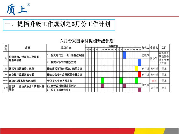 5月底,质上和重庆兴国金科灯具有限公司签订了质量改善合同。