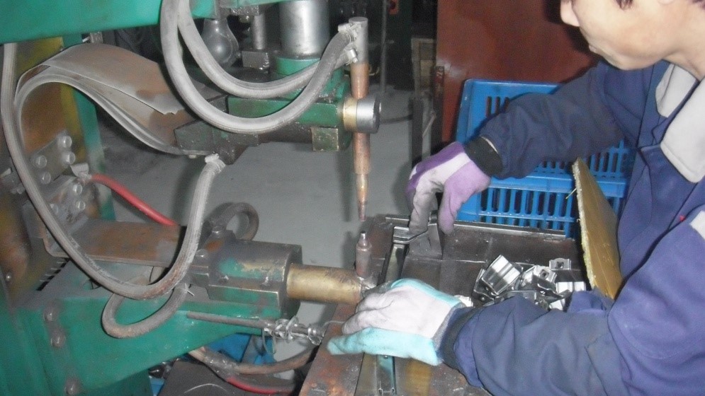 如:对焊接不牢的问题进行跟踪和实验,发现设备在连续自动点焊时,时间过短,导致焊接不牢,现改为人工脚踏点焊(下图),能有效保证焊接质量。已改进,合格率达100%。